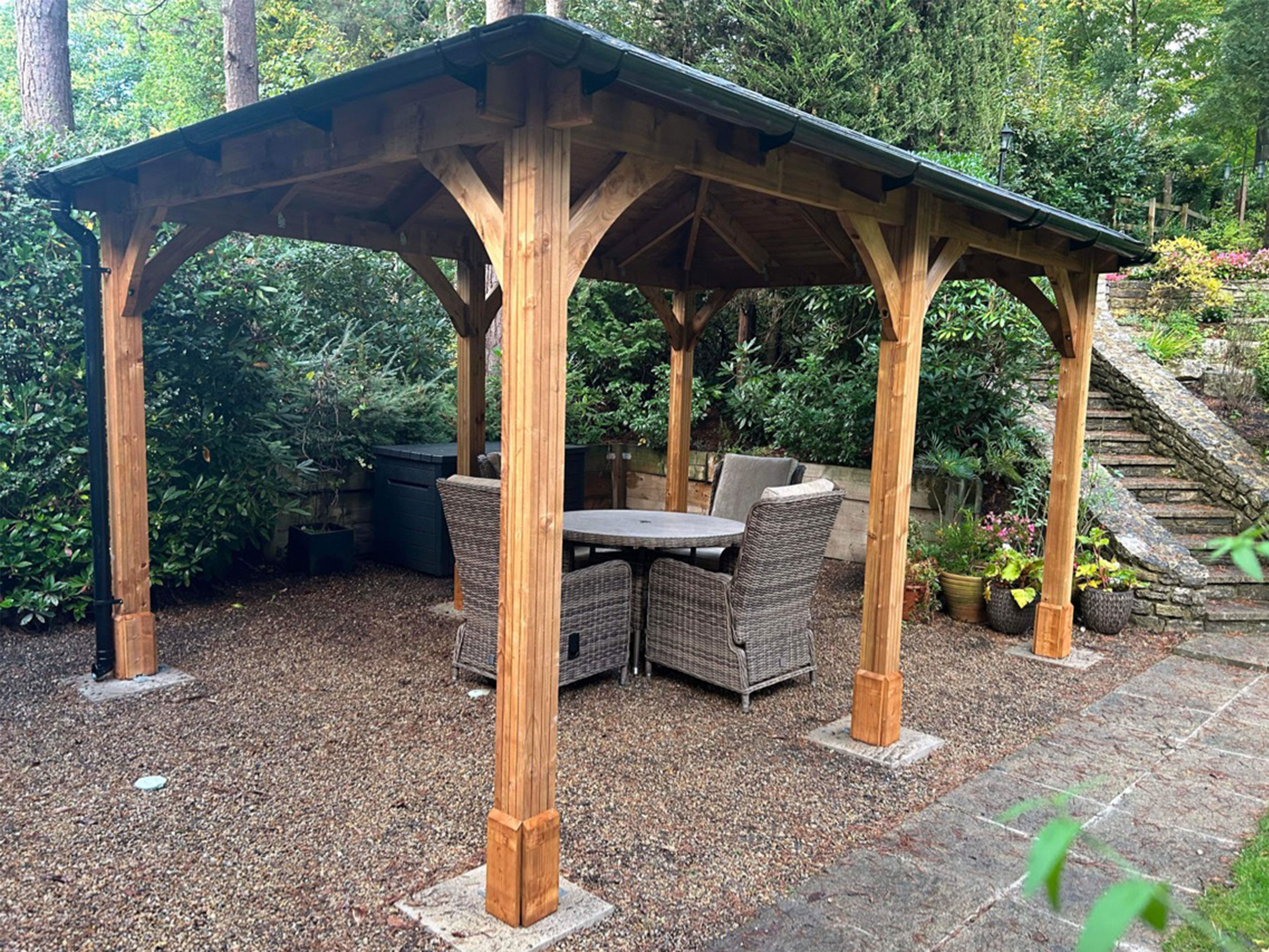 We use the finest materials to guarantee the longevity and resilience of your gazebo or pergola. Our structures are built to withstand the test of time and the whims of British weather.